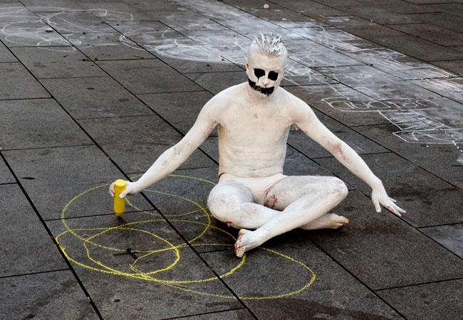 Y es que si alguien que se autodenomina artista o se le considera como tal dice o sugiere a propósito de cualquier cosa “es que para mí es así” aborta toda discusión generando así en los interlocutores la aparición del más nefasto y ninguneador de los valores democráticos: la tolerancia. Pero ojo, si hay algo en lo que sobresalen las artes performáticas es en su capacidad de generar estrafalarios argumentos que agarran vuelos estratosféricos y que, lejos de poner puntos finales o por lo menos seguidos, han hecho de los puntos suspensivos su trofeo más elemental: cualquiera, hasta el performer en sí mismo, puede pensar lo que quiera y como quiera ¡no importa! puesto que la subjetividad –piedra angular de todo lo performático-, hoy por hoy, es un velo que oculta la frustración general del mundo occidental y que se resume, en la innegable realidad de que nunca antes en la historia estuvimos tan segmentados y divididos en fantasmagóricas otredades o en exiliados yoes. De esta manera, ya no es relevante el origen ni la ideología del artista-performer, ya que sin importar de donde provenga bien sea el sujeto o sus juicios, ambos están abocados a reproducir los eternos afanes de diferenciación social, racial, sexual, etc., exponiéndolos por medio de las imposibilidades generales de la civilización –mutadas en cuerpos tan roídos como intocables o en infinitas epistemologías de la desnudez o en vagas metafísicas de la memoria colectiva o, incluso, en inenarrables circunstancias tan artificiosas como reales- completamente incapaces de despuntar la representación de un espectáculo enfermizo que, como sucede en internet constantemente, reclama complacencias y reconocimientos donde no los hay.