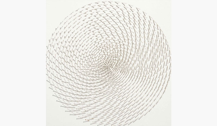 Gunther Uecker (b. 1930), Spirale , 1969 . Petróleo y clavos sobre lienzo montado en panel. Precio dado cuenta: $ 530 500