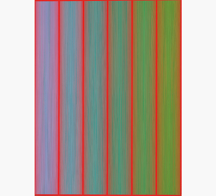 Richard Anuszkiewicz (b. 1930), los Bosques Tropicales , 1969 . Acrílico sobre lienzo. Estimado: $ 25.000 - 35.000. Este trabajo y otros que aparece en esta historia se ofrecen en la Primera Abrir / NYC venta el 22 de julio