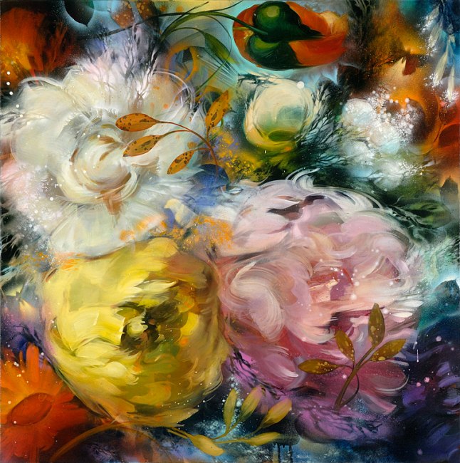 Cada flor es única en su manifestación particular de la mayor codificación genética dentro de ella. Lo mismo debe decirse de todas las personas de nuestra propia especie. Y así, al igual que los monjes budistas vieron su verdadero ser reflejadas hacia ellos en las flores que contemplan, por lo que deben cada espectador encontrará su propia conciencia inimitable de sí mismos y su mundo entretejido en el juego de color, la textura y la forma de los lienzos de Blandino.
