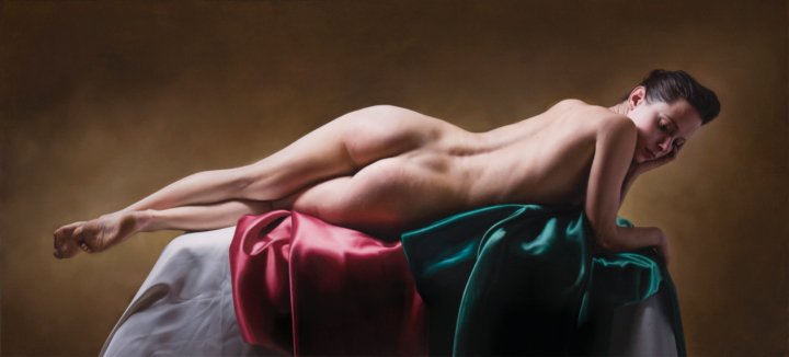 Su trabajo se halla en un realismo de quien busca, experimenta y se expande; de las calidades táctiles a la mirada del personaje, del acrílico al óleo, del pequeño formato al medio formato, sabiendo que los límites se los impone, principalmente, uno mismo.