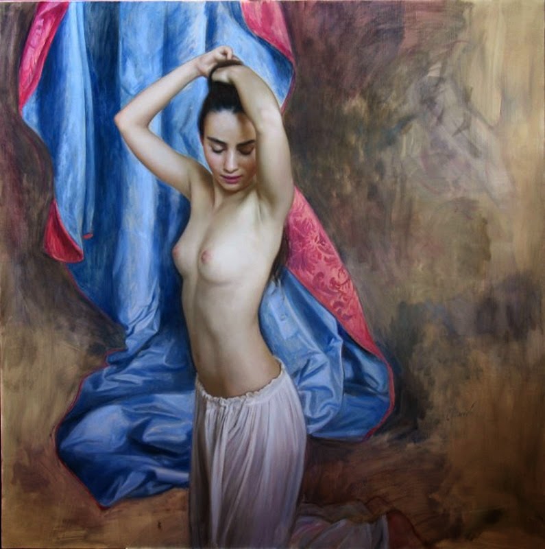 Pintura al óleo es su medio de elección, y sus sujetos, distintos de los retratos, incluye la figura femenina, cortinas, naturaleza muerta, realismo simbólico y mágico, así como escenas de la vida ordinaria.