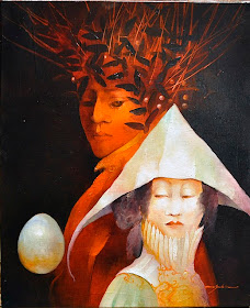 "Metamorphosis, transition, and evolution provide the common threads of the art of Anne Bachelier. The artist captivates her audience with compelling, highly imaginative images that are distinct, unique, inventive and immediately recognizable. Her metaphysical, dream-like fantasies evoke feelings simultaneously powerful, peaceful, and protective. This unique "other" world, untouched by time or place, reminds the viewer of the eternal dance of transformation and regeneration."
