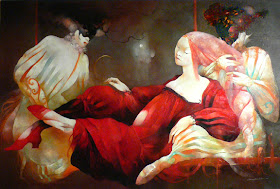 Her personages present archetypes engaging in matters of great import and on a grand scale. The spectator witnesses the unfolding of a drama that evokes a dream-like mystery; an intangible, ethereal otherworldliness that is simultaneously powerful, peaceful, and protective. The visions of Anne Bachelier capture the macabre with grandeur, power, and riveting beauty."