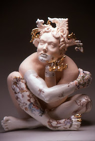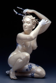 Desde hace varios años mi referencia de cerámica más evidente ha sido el de la estatuilla, una forma asociada con la decoración, la domesticidad y la pantalla. Confundir la figura contemporánea y el objeto de cerámica decorativa crea una representación de un sujeto en forma directa por su patrimonio cultural. La "figura-como-estatuilla" disminuye de una manera que es tanto psicológica como física - su propósito es encajar, más plana, soporte y seducir. Una referencia relacionada ha sido la de la cerámica elaborada y adornada producido por el histórico fábricas de cerámica europeos de Sèvres, Meissen, y Minton. Fue un alquimista que después de años de trabajo forzado por un ambicioso príncipe finalmente abrió el secreto para formular verdadera porcelana en Europa. En el momento en que esta sustancia era más valiosa que el oro, y pronto es la producción estaba financiando la expansión de los imperios.