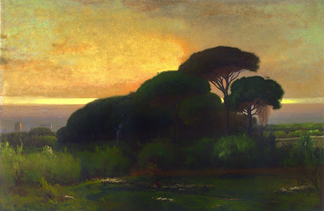George Inness [1825-1894] la Mayoría de Edad Durante la Formación de la Escuela del Río Hudson, Cuyos artistas se ve la naturaleza Como una Manifestación de lo divino y se esforzó parrafo del la del Que represente Lo Más fielmente posible. Embargo de pecado, Inness distinguió of this grupo en el profundo grado en El que las Ideas Filosóficas Espirituales Y inspiraron su obra. En última instancia, se convirtio en generation el principal de artista-Filósofo Estadounidense de su. Brevemente Entrenado por Juan Jesse Barker, Inness Ganó la Mayor Parte de su Conocimiento de la Estructura compositiva maestros Mediante el estudio de los paisajes de los Viejos, especialmente Claude Lorrain y Salvator Rosa, MIENTRAS SE Trabaja Primero en la Empresa grabado Sherman y Smith y LUEGO en N. Curtidor (Más tarde curtidor Y de Ives). En Referencia a las reproducciones de pinturas Estas, observó, "Hubo ONU Poder de motivacion, Una grandeza de alcance, en Ellos. Eran naturaleza, rendido gran Lugar de Ser menospreciado por insignificante detalle y Ejecucion insignificante". Poco despues, Inness Encontro las obras de Thomas Cole y Asher B. Durand. "Hubo ONU Elevado Esfuerzo en Cole", El Con Admiración Recordo. En las obras de Durand, Inness percibió "un sentimiento Más íntimo de la naturaleza". Esperaba asimilar Estas Cualidades En sus Propias pinturas.