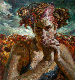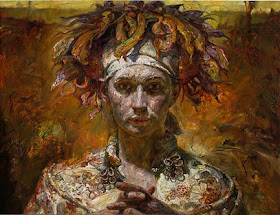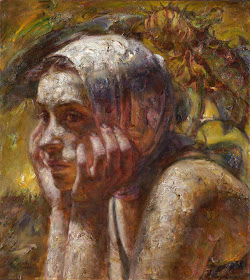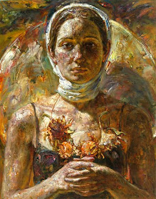 Después de graduarse de la escuela secundaria, me enviaron a un campo de trabajo en el país para "reeducación" durante la Revolución Cultural de China. Allí, fui objeto de trabajo agrícola agotadora. A menudo, he trabajado en los campos de maíz y girasol de sol a sol. Por lo tanto, para mí, girasoles evocan tanto alegría personal y tristeza. Por lo tanto, para entregar mis sentimientos complejos, utilizo girasoles como una metáfora para connotar mis antecedentes y estado emocional. Mi incorporación de collages de figuras de la dinastía Tang de China representa mi herencia china y es un recordatorio constante de dónde vengo. La textura y terrenal en la superficie de la tela se inspiran en la textura de la tierra en la finca donde trabajaba en China. Aunque a menudo me gano un gran placer en el proceso de la pintura, es más importante para desplegar expresivamente esos sentimientos dentro de mí mismo. "Victor Wang